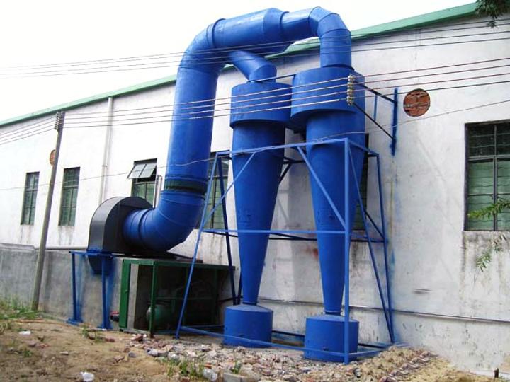 旋风除尘器是由进气管、排气管、圆筒体、圆锥体和灰斗组成。旋风除尘器结构简单,易于制造、安装和维护管理,设备投资和操作费用都较低,已广泛用于从气流中分离固体和液体粒子,或从液体中分离固体粒子。在普通操作条件下,作用于粒子上的离心力是重力的5~2500倍,所以旋风除尘器的效率显著高于重力沉降室。利用这一个原理基础成功研究出了一款除尘效率为百分之九十以上的旋风除尘装置。在机械式除尘器中,旋风式除尘器是效率最高的一种。它适用于非黏性及非纤维性粉尘的去除,大多用来去除5μm以上的粒子,并联的多管旋风除尘器装置对3μm的粒子也具有80~85%的除尘效率。选用耐高温、耐磨蚀和腐蚀的特种金属或陶瓷材料构造的旋风除尘器,可在温度高达1000℃,压力达500×105Pa的条件下操作。从技术、经济诸方面考虑旋风除尘器压力损失控制范围一般为500~2000Pa。因此,它属于中效除尘器,且可用于高温烟气的净化,是应用广泛的一种除尘器,多应用于锅炉烟气除尘、多级除尘及预除尘。
