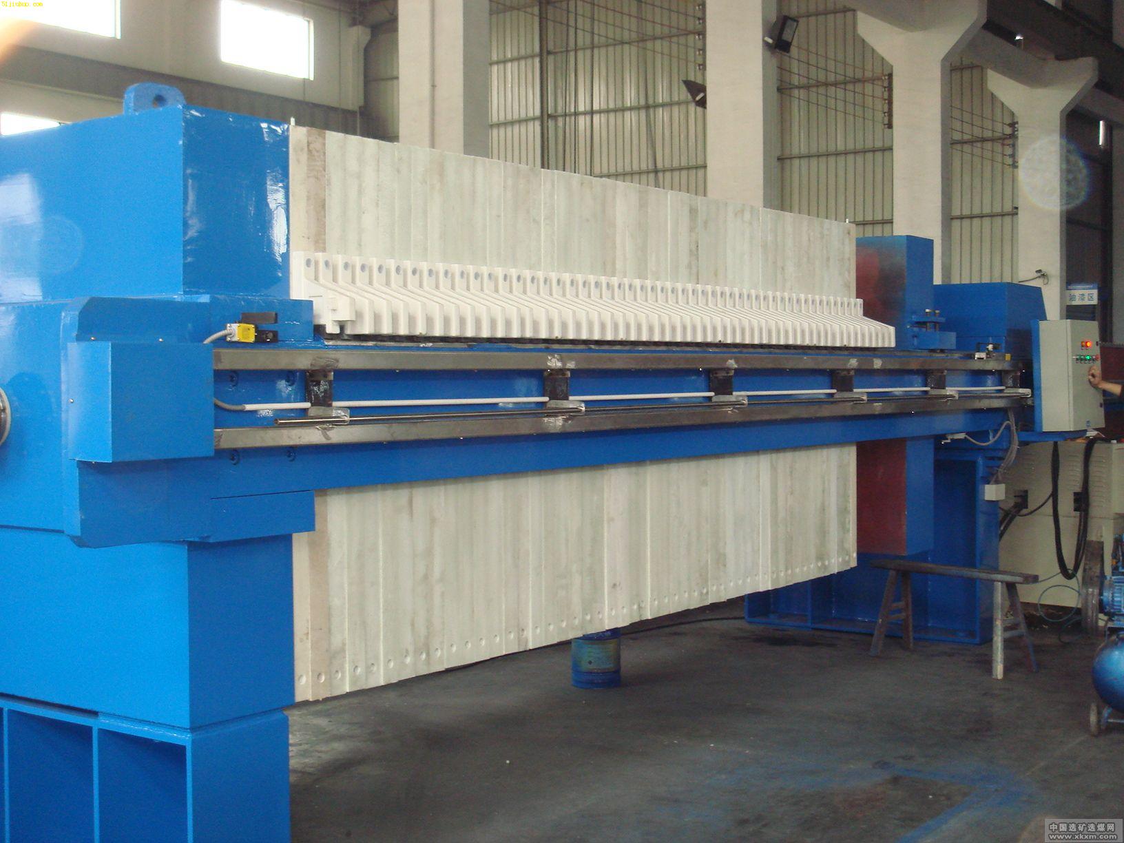 板框压滤机是一种间歇性固液分离设备,是由机架、过滤及传动系统等组成,由滤板、滤框排列构成滤室,在翰料泵的压力作用下,将料液送进各滤室,通过过滮介质,将固体和液体分离。广泛应用于化工、染料、石油、陶瓷、制药、制糖、食品、淀粉、饴糖、油漆、冶金及各行业的污水处理等。它具有分离效果好、适用范围广、操作简单、投资省等优点,特别是对粘细物料的分离,有着不可比拟的优越性。