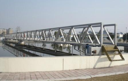 中心传动单管式刮泥机原水经中心配水筒布水后呈辐射流向池子周边溢水槽,随着流速的降低,水体中的悬浮物被分离而沉降于池底,上清液通过溢流堰板由出水槽排出池外。通过减速驱动和悬挂式组件的传动,由刮板将污泥刮集到中心集泥槽,依靠静水压力或泵排出池外。采用中间进水和排泥,周边排水,保证水流均匀。利用液位差自吸式排泥,有浮渣刮集排除装置和过载保护装置;